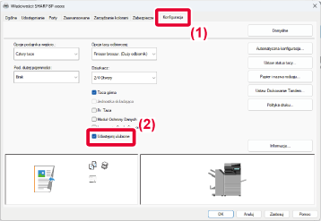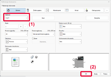 Opis ustawień można znaleźć w pomocy sterownika drukarki.Jeśli urządzenie będzie używane jako drukarka