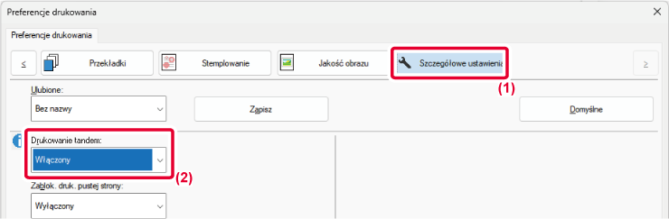 - Wybierz ustawienie [Włączony] dla opcji "Drukowanie tandem".