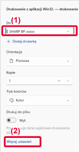 sterownika drukarki zależy od używanej aplikacji (zazwyczaj jest