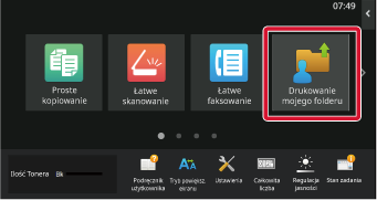 Jeśli na panelu dotykowym nie ma przycisku [Drukowanie mojego folderu], dodaj przycisk [Drukowanie mojego folderu] na ekranie głównym. Informacje na temat dodawania tego przycisku znajdują się w części " DODAWANIE PRZYCISKÓW SKRÓTÓW".