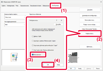 Windows 10: kliknij nazwę sterownika drukarki, a następnie przycisk [Zarządzaj] i [Preferencje drukowania].Określ kod płatności