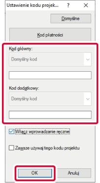 Wprowadź kod główny i dodatkowy, a następnie kliknij przycisk