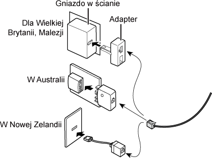 Podłącz wtyczkę znajdującą się na jednym końcu przewodu linii telefonicznej do gniazda linii telefonicznej (LINE) urządzenia, aż do usłyszenia kliknięcia, a następnie podłącz drugą wtyczkę do gniazda telefonicznego w ścianie.