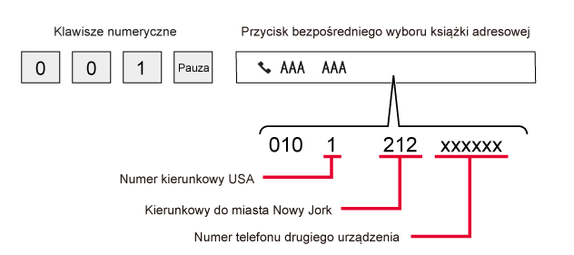 kraju (np. "81" dla Japonii), aby wstawić pauzę w celu łatwiejszego