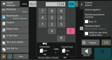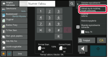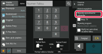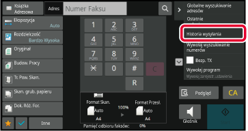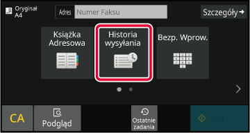 Na ekranie podstawowym lub ekranie książki adresowej naciśnij opcję [Historia wysyłania] na panelu zadań.