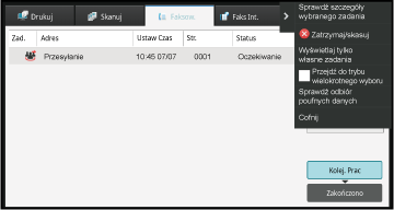 zostanie lista zadań. W celu sprawdzenia statusu zadania faksu należy