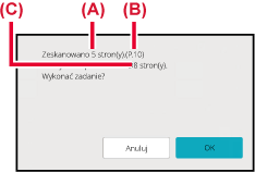 Po zakończeniu skanowania wyemitowany zostanie sygnał dźwiękowy.Po zakończeniu skanowania należy sprawdzić liczbę arkuszy oryginału oraz liczbę arkuszy oczekujących na wysłanie i nacisnąć przycisk [OK], aby rozpocząć wysyłanie.