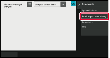 Naciśnij przycisk otrzymanych danych, które mają zostać przekazane, a następnie naciśnij opcję [Przekaż pod inne adresy].