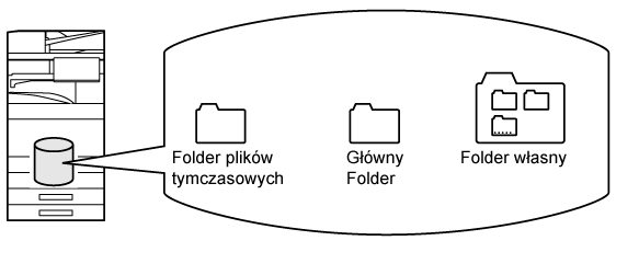 Jako "Mój Folder" można wybrać folder własny utworzony wcześniej lub utworzyć nowy folder jako "Mój Folder". Jeśli "Mój Folder" został skonfigurowany i włączona jest autoryzacja użytkownika, "Mój Folder” będzie zawsze wybierany jako miejsce docelowe dla funkcji [Plik] i [Zapamiętaj Plik]. |