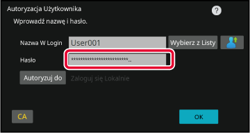 Wprowadź Hasło za pomocą klawiatury programowej.