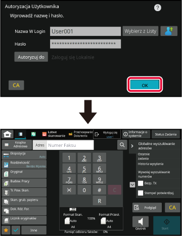 autoryzacji] → [Ustawienia domyślne] → [Wyświetl stan po zalogowaniu].