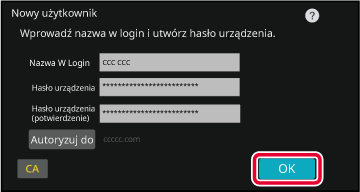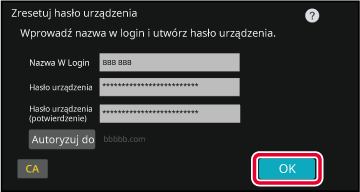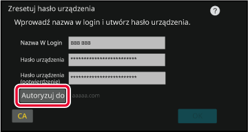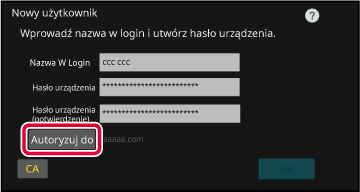 Naciśnij przycisk [Autoryzuj do]. Wyświetlona zostanie