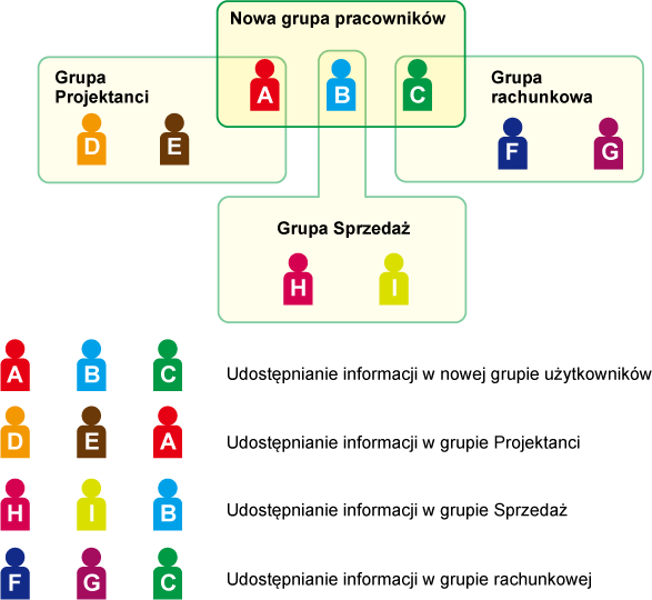 w organizacji/grupie, co ułatwia użytkownikom dzielenie się danymi
