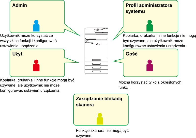zakresu funkcji i ustawień, z których mogą korzystać użytkownicy