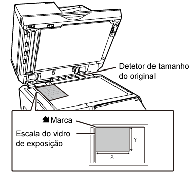 Coloque o original voltado para baixo e alinhe o canto superior esquerdo do original com a parte esquerda posterior (na ponta da marca