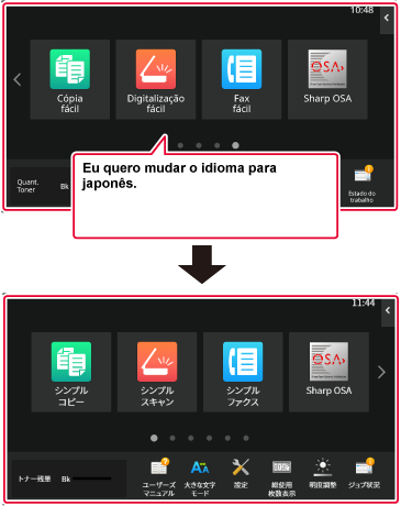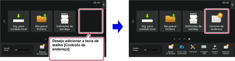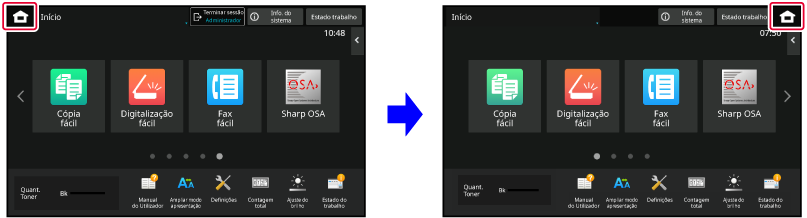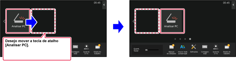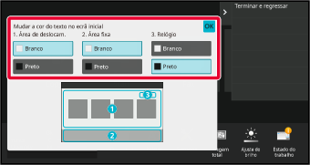 As definições serão guardadas na máquina e aplicadas.É possível alterar a posição da tecla [Ecrã