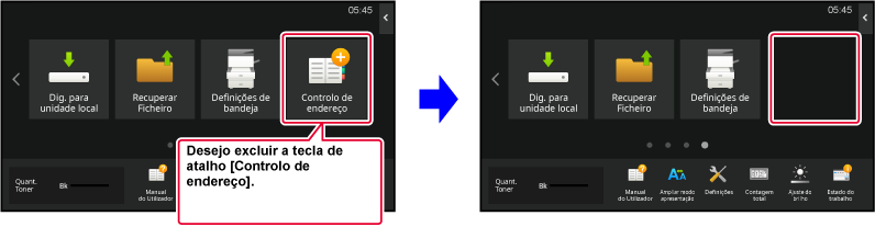 ecrã inicial e eliminar teclas de atalho não necessárias.