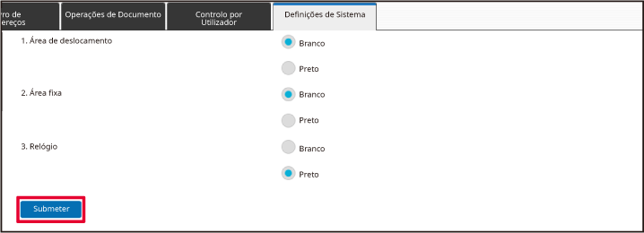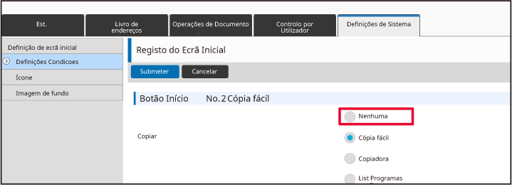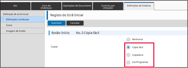 Ao premir a tecla [Submeter], o ecrã [Registo do Ecrã Inicial] é fechado.Finda a configuração das definições, clicar no botão [Submeter].