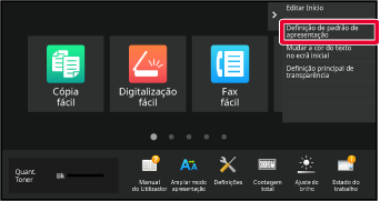 Abrir o painel de ação no ecrã inicial e premir [Definição de padrão de apresentação].