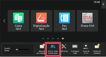 Toque na tecla [Ampliar modo apresentação] no ecrã inicial.