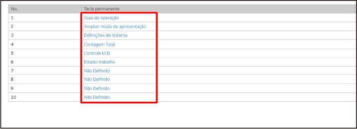 É possível clicar em [Não Definido] para adicionar uma nova tecla fixa.