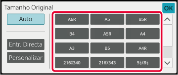 Toque na tecla do tamanho de original apropriado.