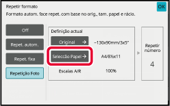 Altere o tamanho do original, o tamanho do papel ou o rácio de cópia batendo levemente na tecla [Original], [Seleccão Papel] ou [Escalas A/R] respectivamente quando for necessário.