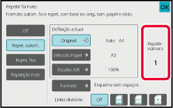 A contagem de repetição máxima para copiar imagens numa folha é calculada automaticamente de acordo com o tamanho do original, o tamanho do papel e o rácio de cópia a seleccionar no ecrã de base. |