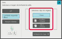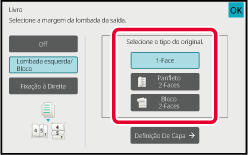 Prima a tecla [1-Face], [Brochura 2-Faces] ou a tecla [Bloco 2-Faces] conforme for mais adequado ao original.