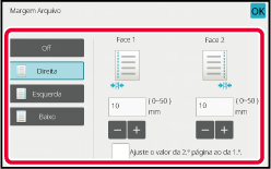 Toque no visor do valor numérico que indica a área da margem de arquivo no lado da frente ou no verso, e introduza a área usando as teclas numéricas.