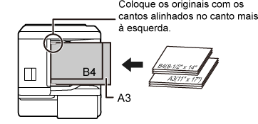 Utilize esta definição para com 2 tipos de tamanhos diferentes mas com os lados do mesmo comprimento. Os originais são inseridos na bandeja do alimentador de documentos com os lados que têm o mesmo comprimento alinhados à esquerda. • A3 e A4 • B4 e B5 • A4R e A5 • 11" x 17" e 8-1/2" x 11" • 8-1/2" x 14" e 8-1/2" x 11"R • 8-1/2" x 14" e 5-1/2" x 8-1/2" • 8-1/2" x 13" e 8-1/2" x 11"R • 8-1/2" x 13" e 5-1/2" x 8-1/2" • 8-1/2" x 11"R e 5-1/2" x 8-1/2" |