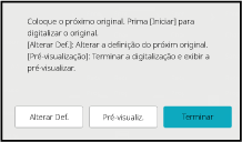 Repita este passo até ter digitalizado todos os originais.Repita o procedimento até que todas as páginas sejam digitalizadas e verifique a imagem no ecrã de pré-visualização.