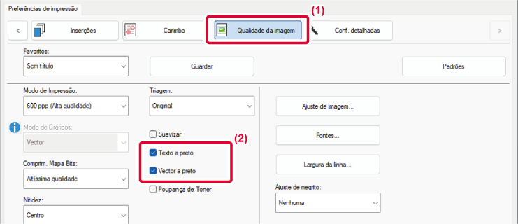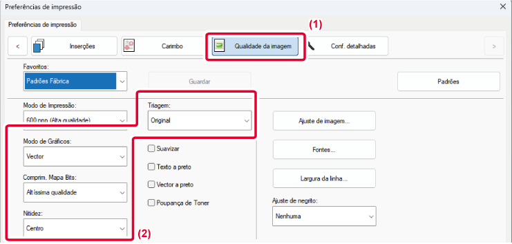 Selecione o modo de gráficos entre "Quadrícula" ou "Vetorial". |