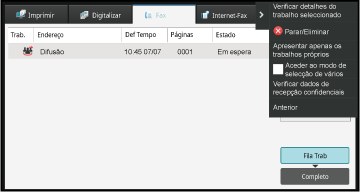 Quando se toca no visor de estado do trabalho, os trabalhos
