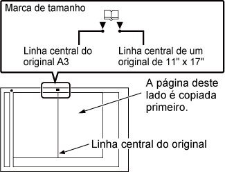 Concluída a digitalização, coloca-se o próximo original e toca-se na tecla [Iniciar].As páginas abertas de um panfleto encadernado