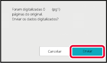 Escutar-se-á um som para indicar que a digitalização está concluída.Concluída a digitalização, verificar o número de folhas do original e o número de folhas para envio e tocar na tecla [OK] para iniciar a transmissão.