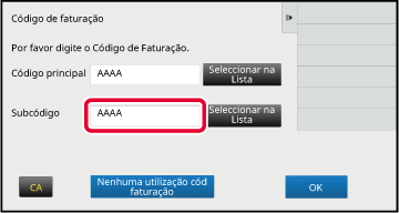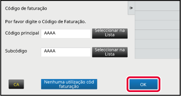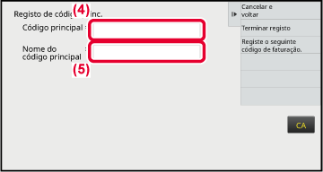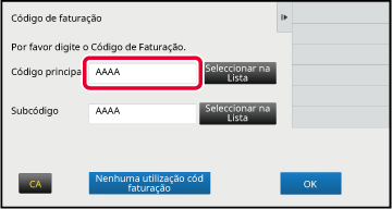 Quando a janela de introdução do código de faturação for exibida, premir a caixa em [Código principal] e, em seguida, introduzir o código principal.