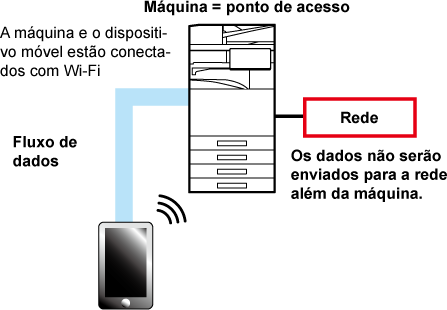 via Wi-Fi. Neste modo, a comunicação com a rede à qual a máquina