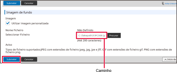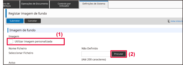 Selecione "Utilizar imagem personalizada" e clique no botão [Procurar] para selecionar a imagem desejada.