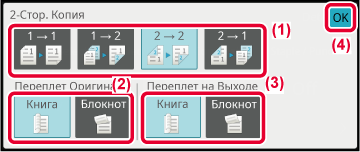 ОСНОВНЫЕ ОПЕРАЦИИ ПО ИЗГОТОВЛЕНИЮ КОПИЙВыберите режим 2-стороннего копирования.