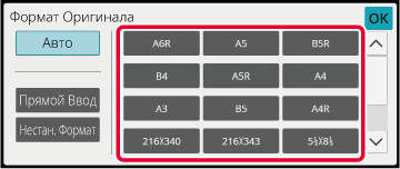 Коснитесь кнопки соответствующего формата оригинала.