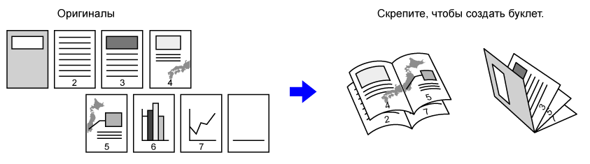 Эта функция удобна для создания буклетов и брошюр из копий.