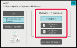 Коснитесь кнопки [1-Сторонн.], [2-Сторонний Буклет] или [2-Сторонний Блокнот] в соответствии с форматом оригиналов.