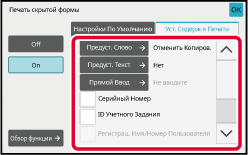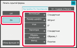 Коснитесь кнопки [On], затем установите требуемые значения параметров на вкладке [Настройки По Умолчанию].
