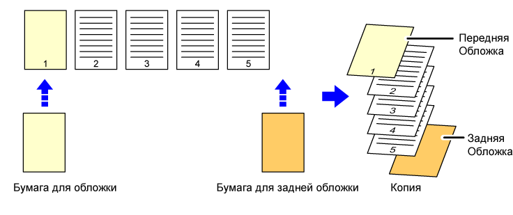 ![]() Передняя обложка будет вставлена в начале копий. На шестой странице, являющейся задней обложкой, будет выполнено 1-стороннее копирование. * Копирование не удет выполняться на пятую страницу оригинала. |