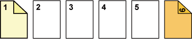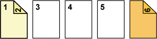 ![]() Первые две страницы оригинала будут скопированы на переднюю обложку с использованием 2-стороннего копирования. На шестой странице, являющейся задней обложкой, будет выполнено 1-стороннее копирование. |