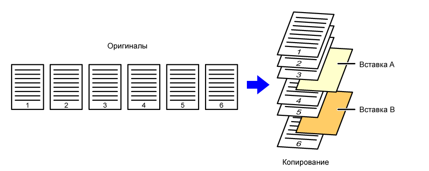 вставке разделительных листов в шесть 1-сторонних оригиналов или