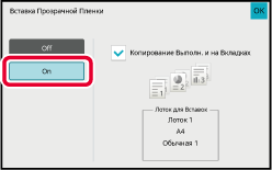 Поместите оригинал в автоматический подающий лоток документа или на стекло сканера.Коснитесь кнопки [Прочие], затем коснитесь кнопки [Вставка Прозрачной Пленки].