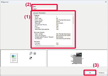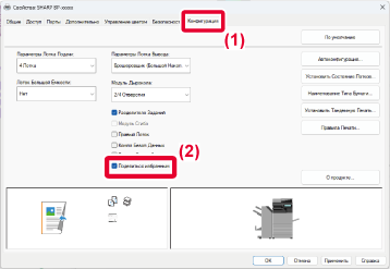 принтера. Сконфигурированные на вкладках насройки будут отображены