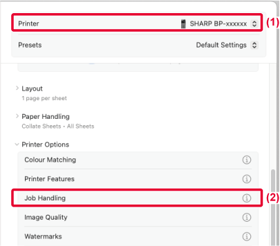 В macOS 12 и более ранних версиях выберите [Job Handling].
